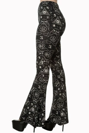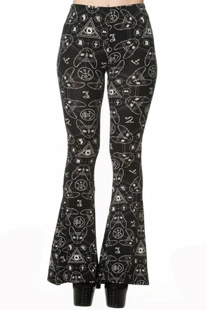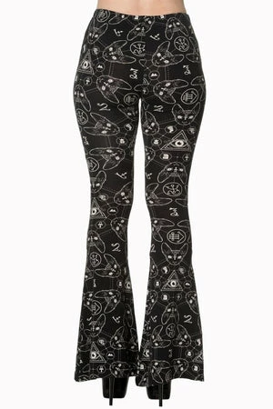 9 lives leggings, an awesome pair of gothic, ladies leggings designed by Banned Apparel, with a superb print of cat heads and mystical symbols.