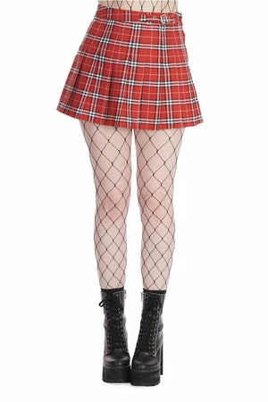 The gothic skirt has tartan print, buckle with eyelets detailings, pleats detail and a flattering fit.