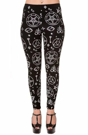 Bring a bit of evil to your life in these “Pentagram” black leggings from Banned. Made from 95% viscose and 5% elastane with an all over occult style print.