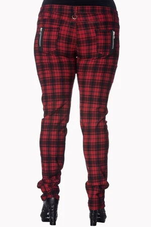 Have fun in these “Red Check” plus size skinny jeans from Banned. Made from 50% cotton, 45% polyester and 5% elastane with an all over check print and zip detailing on the back pockets.