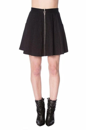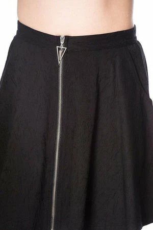 The alternative mini skater skirt has a figure accentuating shape,two side pockets and it fastens at the front with a zipper.