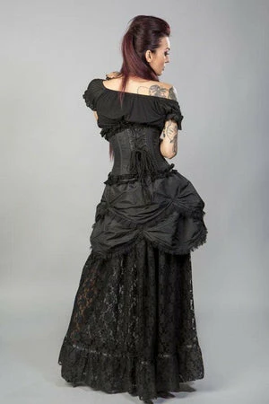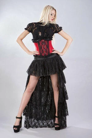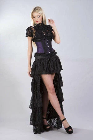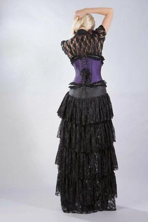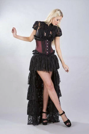 This Elizium steel boned underbust taffeta corset with black lace has clip fastening and back lace fastening with modesty panel.