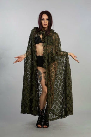 This ultra sexy gothic cape from Burleska, will raise the hotness level of any outfit. The style is available in olive-green, black or cream color.
