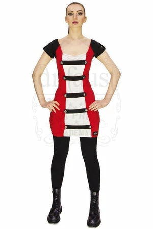 Combine this awe-inspiring rockabilly or steampunk dress from Dr Faust Apparel, with high heel boots for an extra statement layer for any occasion.