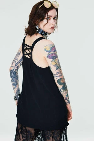A classic black vest top from Jawbreaker, perfect for any goth wardrobe, you can’t go wrong with black, it complements every other color.