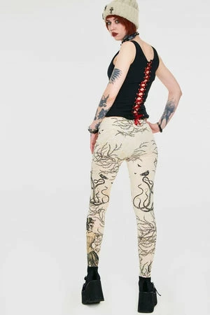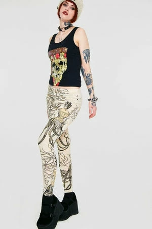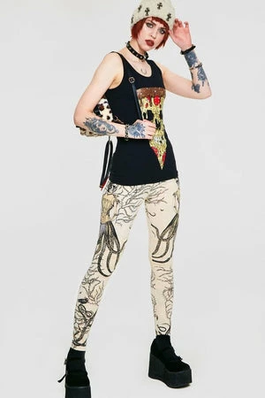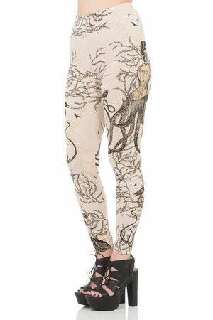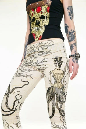 Spectacular leggings called “Octolady” from Jawbreaker, these cream coloured leggings have a steampunk style skull and octopus design. The fit is true to size with plenty of stretch.