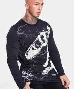 A superb unisex black long sleeved sweatshirt with a fearsome dinosaur bones print. This top is made in unisex sizes, for a men’s longline relaxed fit t-shirt/sweatshirt or a ladies sweater dress.