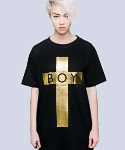 Boy Cross, a superb 100% cotton, unisex, short sleeve t-shirt design from Long Clothing, which is available in a choice of five colours. This superb style has a print of a cross with the word boy over it.