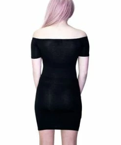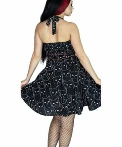 This Gothic dress from Queen of Darkness, is for all the creepin’ it real magical types, with a large black “Angel Wing” themed foil print.