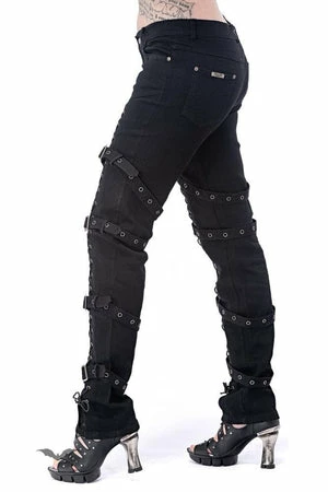 An awesome design for those who are gothic and love to rave. These baggy trousers have lace running down the front, with four buckles going down each leg. A wicked design for your wardrobe.