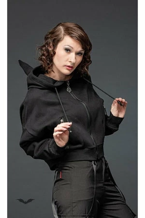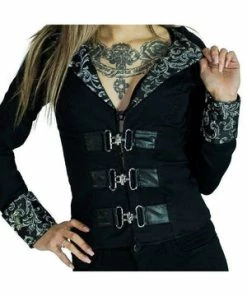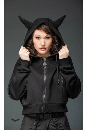 This one is utterly epic, a wicked jacket designed by Queen of Darkness that features an awesome hood with horns and a pentagram zip.